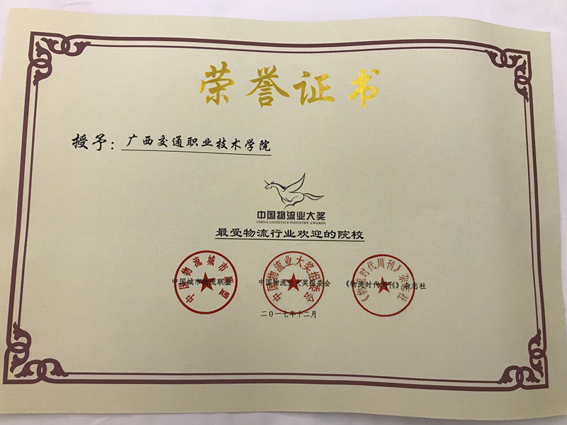 本次论坛由中国交通运输协会、海南省商务厅、海南省交通运输厅主办,上海海事大学联办,中国物流城市联盟、中国城市物流研究中心、中国物流投融资联盟、国际航运企业联盟等多家单位承办。论坛期间,鉴于各单位在2017年所取得的成绩和对中国物流业所作的贡献,经自荐、推荐、行业调查、并结合媒体及专家意见,评选出“2017中国物流100人”、“最受物流行业欢迎的院校”、“物流人才培养特别贡献奖”等多个奖项。其中“最受物流行业欢迎的院校”奖项全国总计评选50名。广西只有两所高职院校获此殊荣,我院便是其中一所。