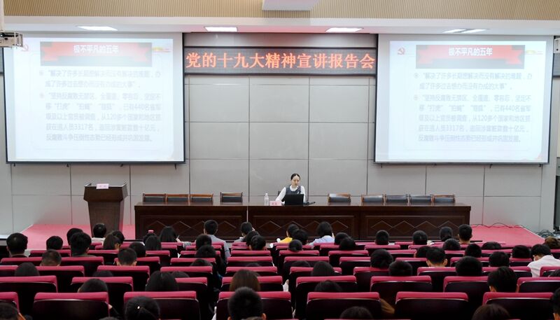 学院领导带头下基层,上讲台,开设专场,深入系部为师生宣讲十九大精神,把广大师生的思想和行动统一到党的十九大精神上来,进一步凝聚“新时代要有新气象,更要有新作为”的思想共识和担当意识。