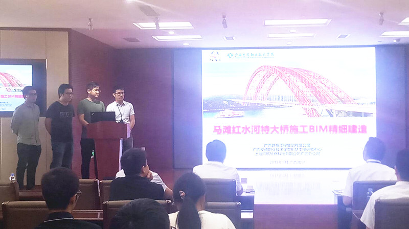 来自全区47个采用(BIM)技术建设的房屋建筑和市政工程项目参与建筑设计、施工管理(综合)两个赛项的角逐。比赛采用多媒体现场演示的方式进行并设置评委现场提问环节。我院建筑工程系BIM工程研究中心的师生与广西路桥工程集团有限公司、上海同筑信息科技有限公司联合申报的《马滩红水河特大桥施工BIM精细建造》项目获得施工管理(综合)组二等奖。我院建筑工程系BIM工程研究中心的师生协助南宁轨道交通集团有限责任公司、上海同筑信息科技有限公司申报的《南宁轨道交通BIM技术应用》项目获施工管理(综合)组三等奖。