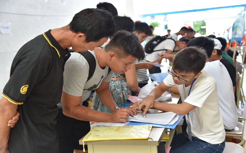 新生接待现场,学生志愿者们频繁穿梭在校园的每个角落,有的举着系部的牌子召集新生集合,有的引导新生办理入学手续,有的为新生答疑解难,有的帮新生搬运行李。为确保迎新工作有序进行,后勤保卫处安排保安和义务消防队的同学在校园各主要出入口处进行统一指挥和巡逻,维护交通秩序。新生接待当天,车辆进出通畅,停放有序。