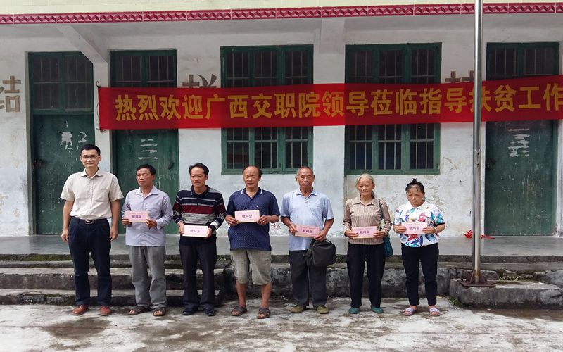 (党委工作部 梁科 文/图)“有了交职院扶贫工作队的帮助,我们有信心尽早脱贫!”东兰县三弄瑶族乡全洞村丘懂屯队长兰海东高兴地说。7月19-20日,学院党委书记温宗胤、党委副书记、纪委书记莫海燕、副院长韦红教、总会计师谭雄4位学院领导分别率队赴东兰县7个定点帮扶村走访慰问贫困户,调研指导脱贫攻坚工作并实地查看学院援建项目。