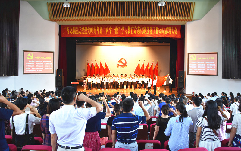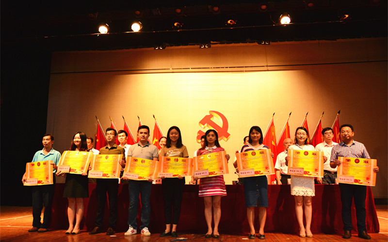 梁友佳、张丽梅/图)6月30日下午,我院在园湖校区大礼堂召开庆祝中国共产党成立96周年暨“两学一做”学习教育常态化制度化工作动员部署大会。学院党委书记温宗胤在讲话时强调,我们回顾历史就是要唤起共产党人牢记历史,不忘初心,只有充分发挥每一个党组织的战斗堡垒作用,发挥每一个共产党员的先锋模范作用,才能保障党和国家的事业不断取得胜利。