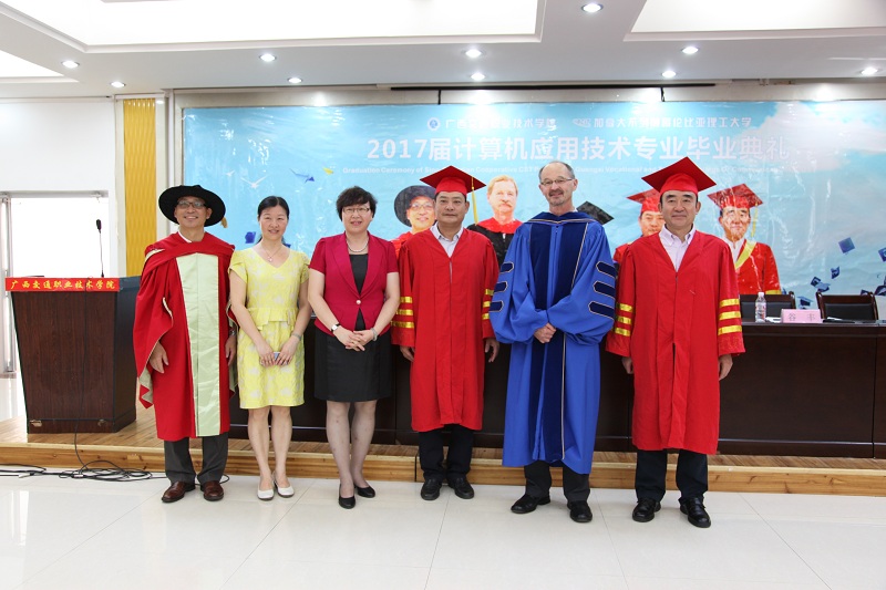 (交通信息工程系 讯 阮兰娟、张于峰/文)近日,PP电子游戏网站2017届中加合作计算机应用技术专业毕业典礼在园湖校区图书馆一楼举行。学院党委书记温宗胤、学院院长程轮、BCIT校长特别代表福斯特·泰特先生、BCIT 国际学院院长谷丰博士、自治区教育厅对外合作与交流处调研员吕青、自治区交通运输厅科教处处长张迎春、学院相关职能部门负责人、信息工程系教师及2017届中加班毕业生参加了毕业典礼。