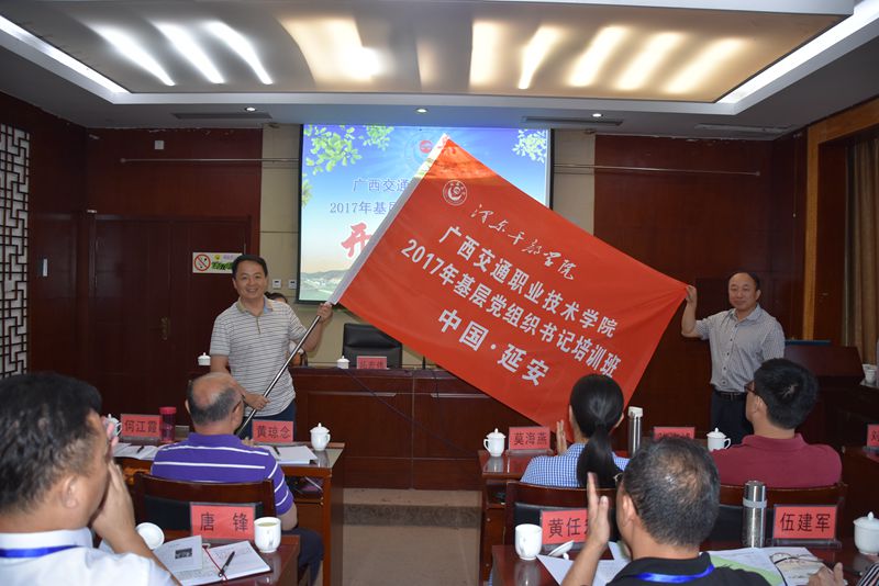 (党委工作部 讯 韦曙光/文)7月10日上午,学院“2017年基层党组织书记培训班”开班典礼在延安大学泽东干部学院窑苑3楼会议室举行。 学院党委书记温宗胤、院长程轮、党委副书记、纪委书记莫海燕、副院长黄琼念、陈海峰,各基层党组织书记、专职党务干部代表近50人参加了开班典礼。 延安大学泽东干部学院院长拓宏伟在典礼上对我院参加培训的各位老师表示热烈的欢迎,对延安大学的办学历史、学校概况等作了介绍,并向培训班学员代表授了班旗, 勉励学员们认真参加学习培训,深刻领会延安精神,使自己思想得到不断升华。