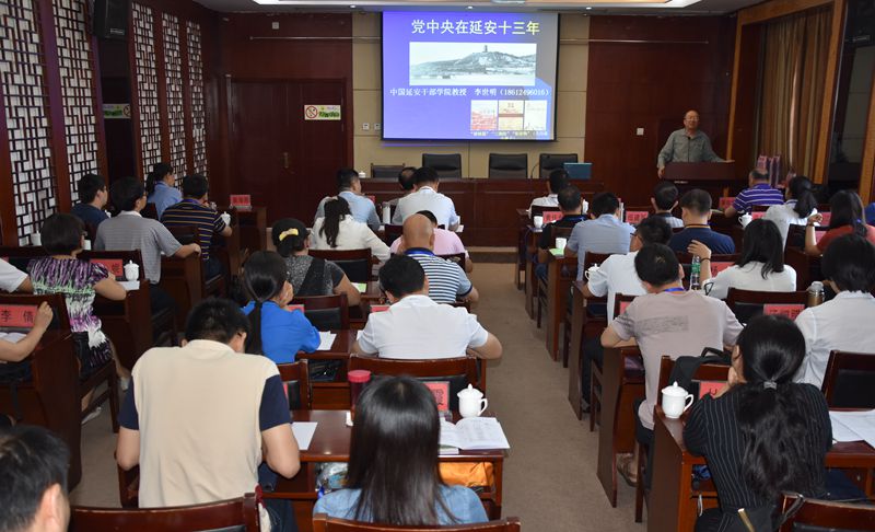开班典礼结束后,延安大学泽东干部学院特聘教授—中国延安干部学院教授李世明作了“党中央在延安十三年”的主题讲座。李教授以毛主席在延安十三年的足迹为线,从“延安的伟大意义”、“延安的伟大作用”、“延安的伟大精神”、“延安的时代价值”四个部分,对13年间党中央在延安的奋斗历程、辉煌奇迹进行了全面的讲述。李教授引用大量史实,深入浅出、娓娓道来,以讲故事的方式将党中央、毛主席、红军在延安时期所发生的重大事件、所作的重大决策一一呈现在学员们面前,让大家深刻领会了中国共产党领导中国革命一步步走向胜利的艰难而光辉的历程。