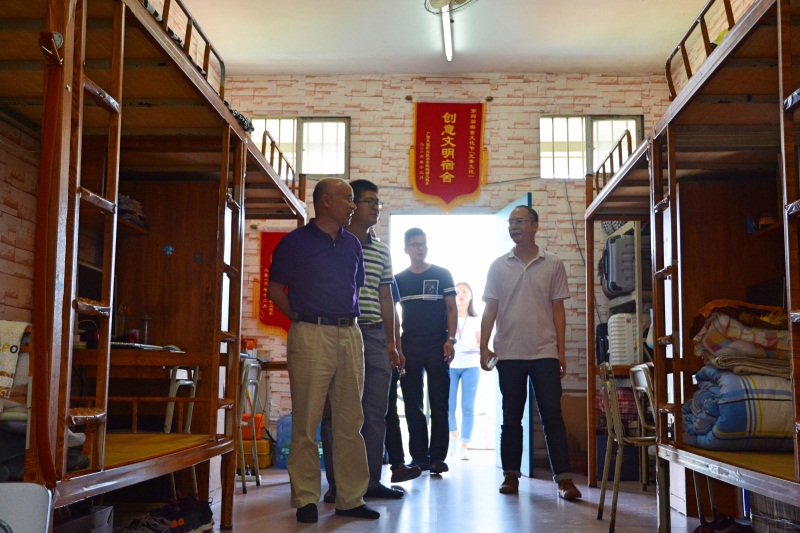(学生工作处 团委 路桥工程系 讯 张楗、杨静/文 容传毅/图) 5月25至27日,我院组织开展春季学期宿舍安全、卫生大检查工作,对学生宿舍进行安全隐患排查,确保宿舍安全稳定。学院副院长黄琼念带队深入四塘校区学生宿舍进行实地检查。