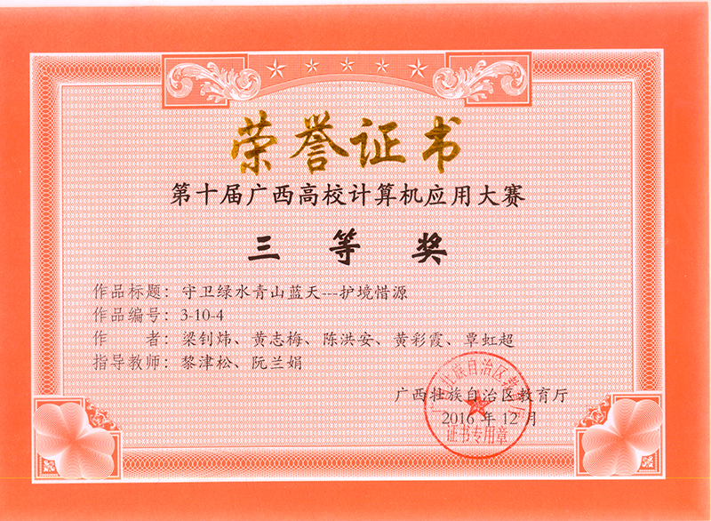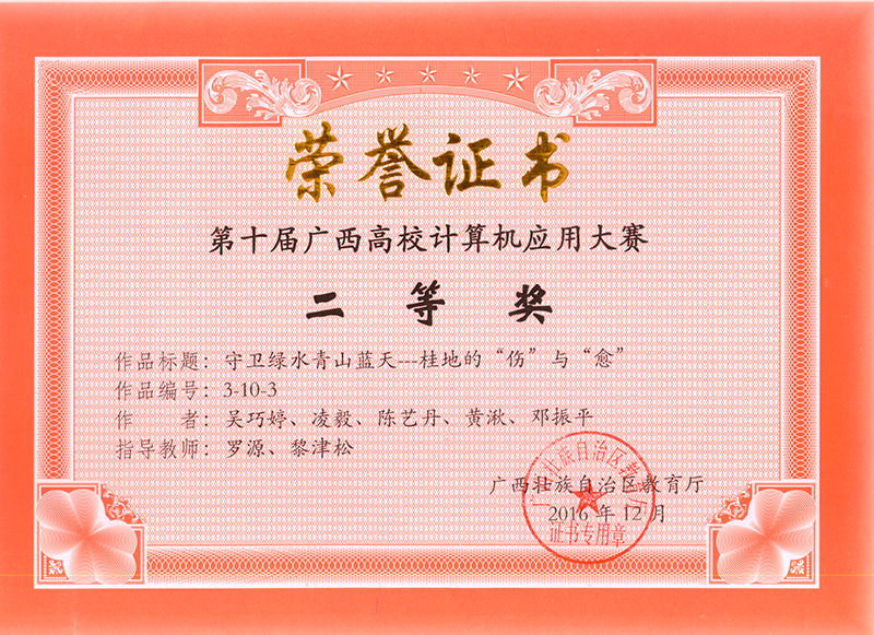 (交通信息工程系 讯 李燕妮/文)近日,由广西壮族自治区教育厅主办、广西高等教育学会计算机基础教育专业委员会和区内一所高校承办的广西高校计算机应用(网页设计)大赛已落下帷幕,经过初赛、复赛、决赛等层层选拔,我院交通信息工程系选送的8个小组的比赛作品全部入围,并获得广西区二等奖4组、三等奖2组,优秀奖1组。