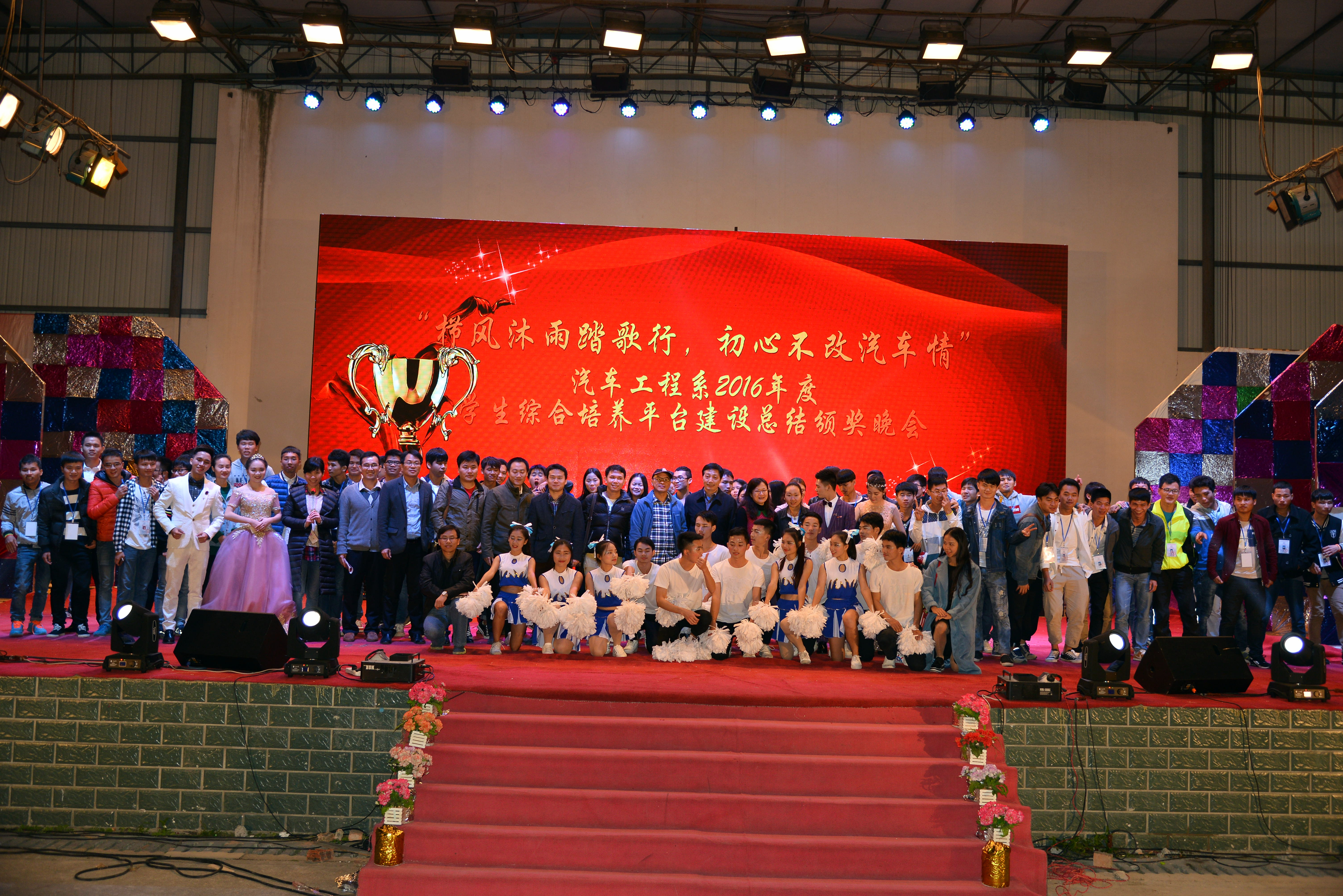 (汽车工程系 讯 林明松、林波/文 罗杰斌/图)12月22日晚,汽车工程系“栉风沐雨踏歌行,初心不改汽车情“主题的2016年度学生综合培养平台建设总结颁奖晚会在中区舞台举行。学院谭雄总会计师,招就处、学工处、人事处、驾校、团委以及汽车工程系全体师生一起观看了晚会。