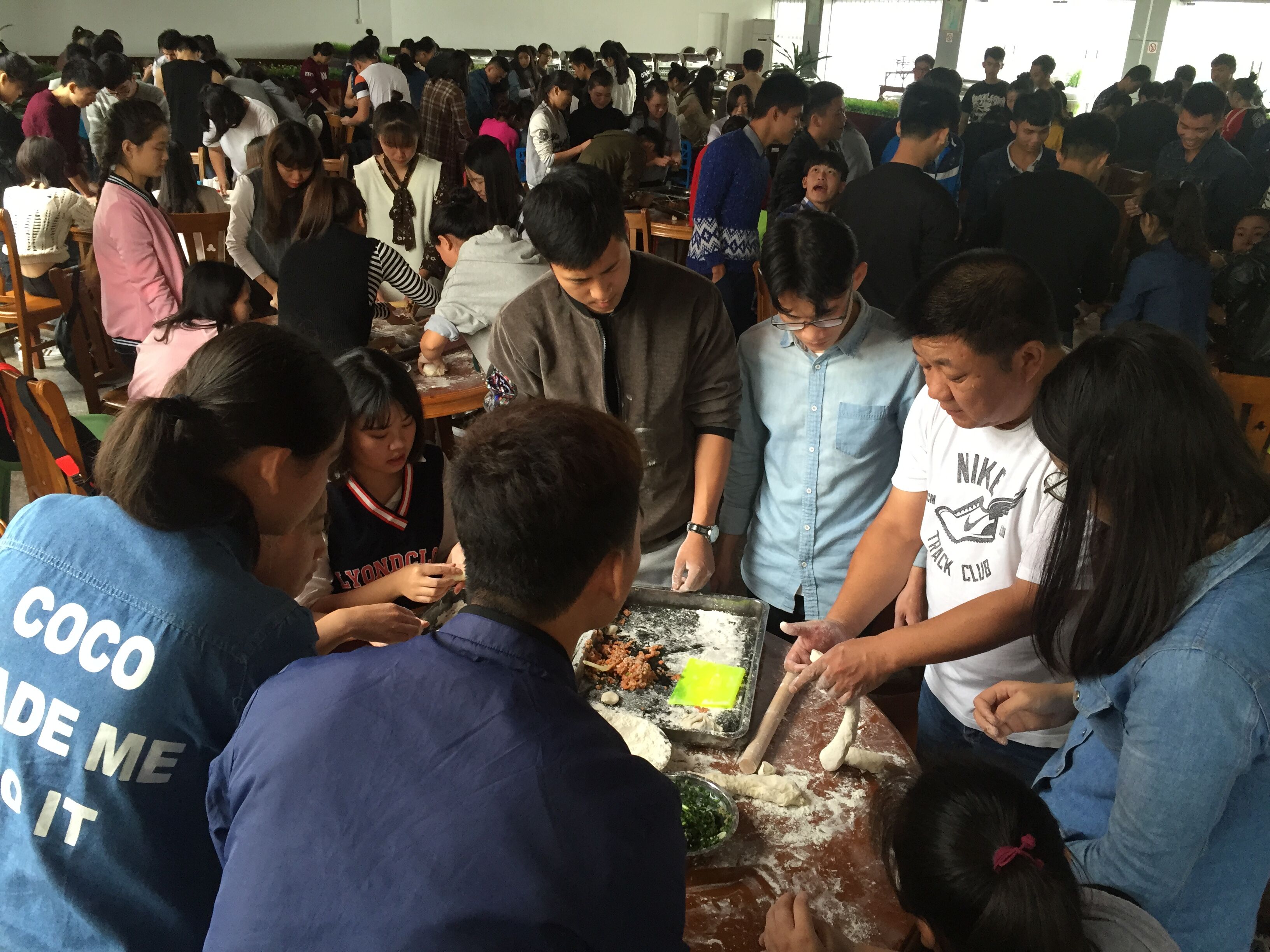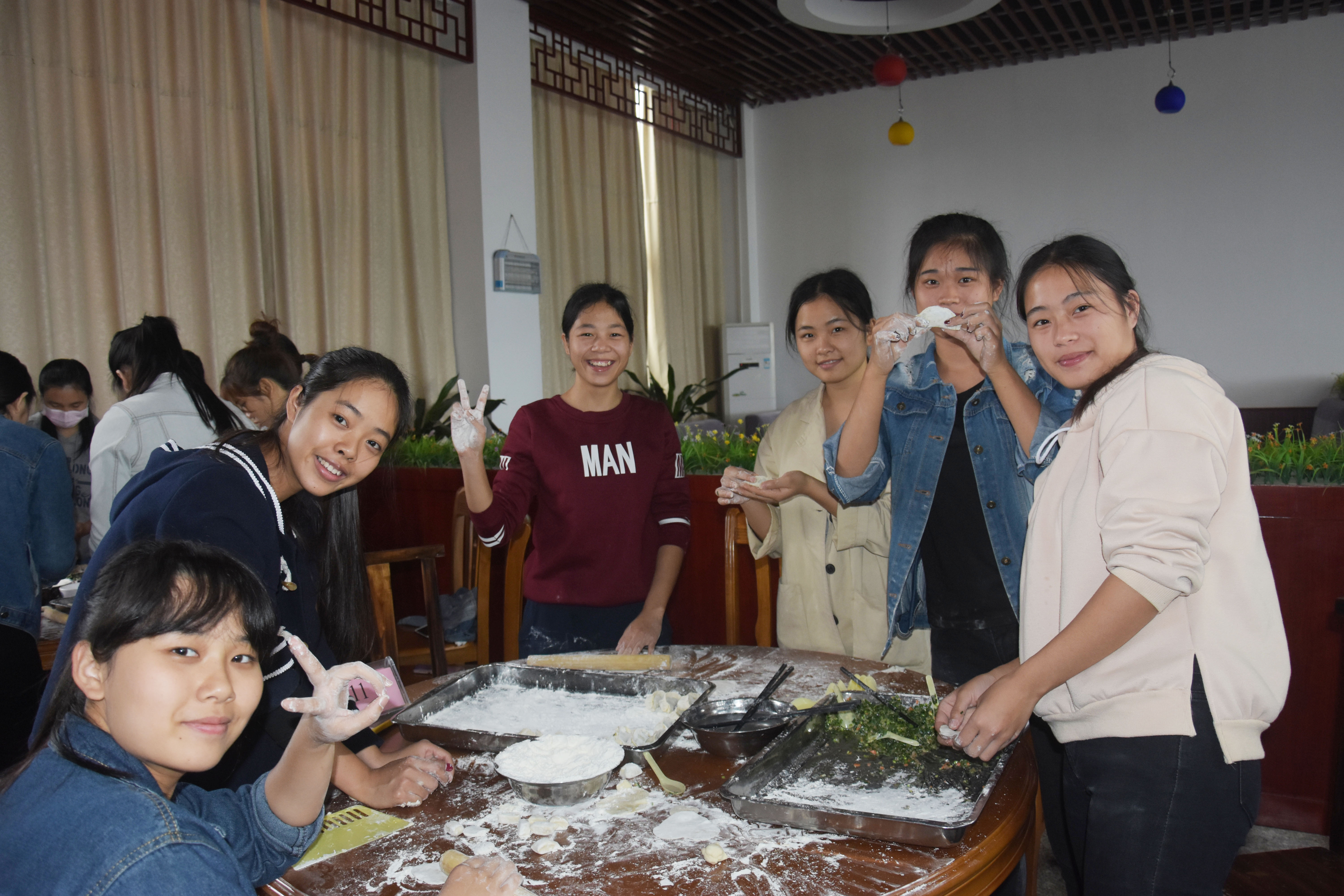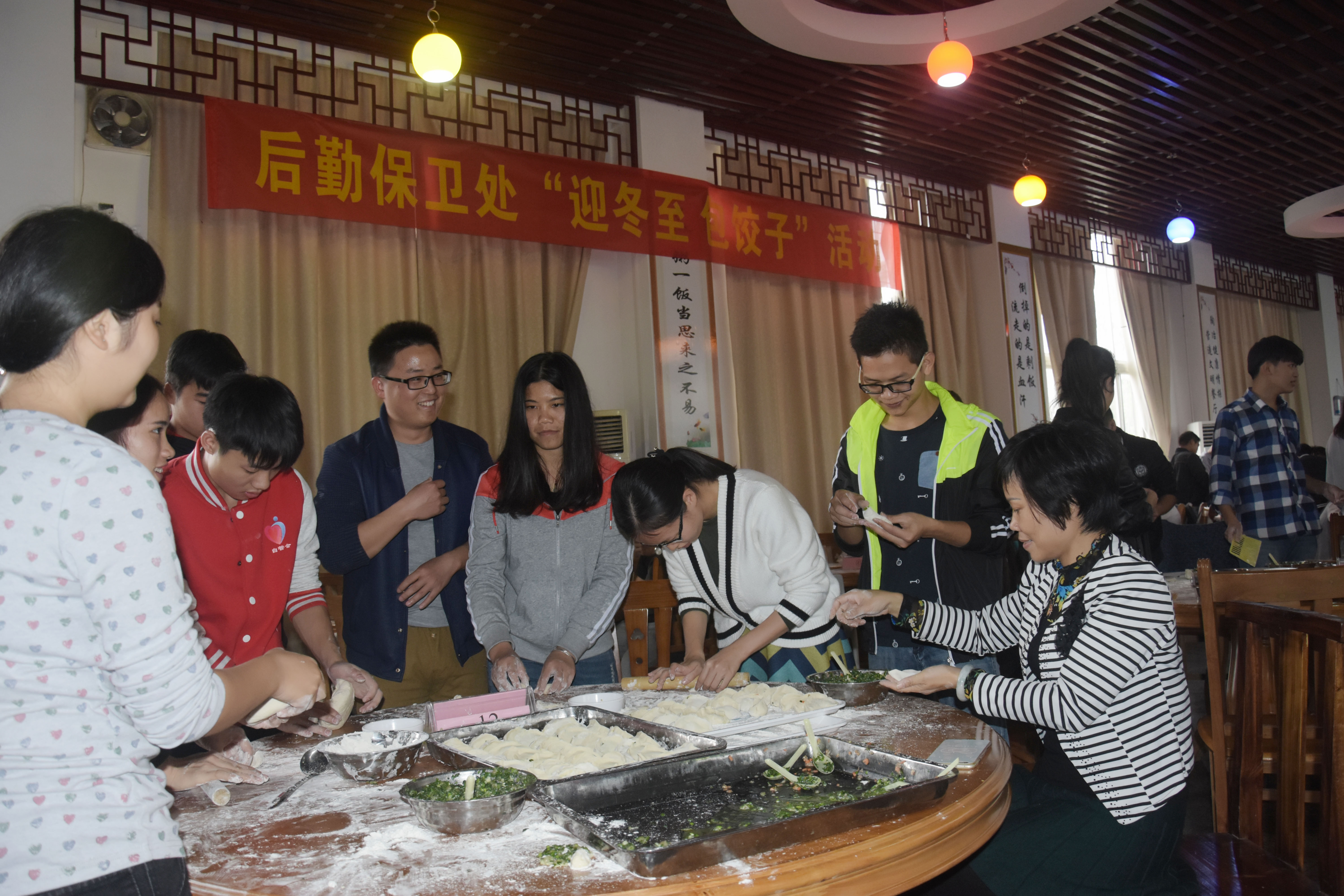 师生合作分工、欢聚一堂包饺子