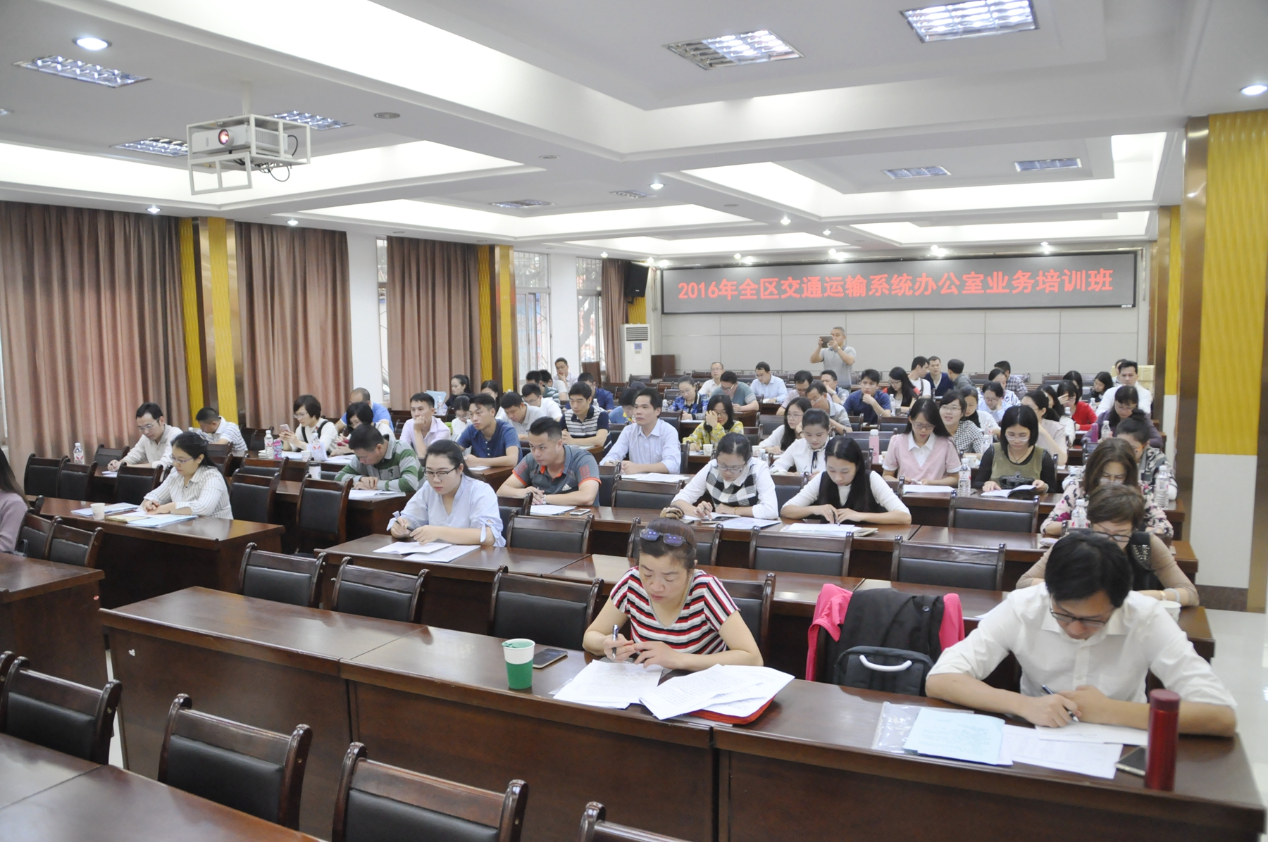 在开班典礼上,交通运输厅副厅长、办公室主任陆晓明作了重要讲话。本期培训班邀请了自治区办公厅庞进处长、自治区信访局苏诗灿处长、自治区保密局李冠健处长三位区级领导以及厅办公室相关领导来讲课。培训班时间安排紧凑,内容丰富,涉及到办公室各方面工作,指导性、针对性较强。