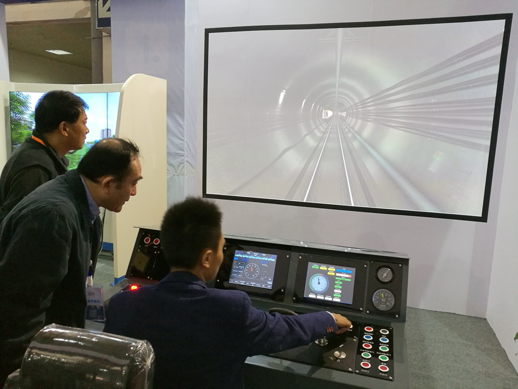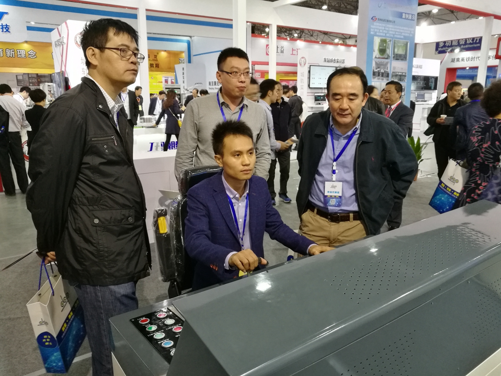 程院长在年会职业教育现代技术装备及教材展览会上,现场听取了前往参会的管理工程系负责人关于城轨实训基地建设及设备采购工作汇报,并考察了城市轨道交通仿真系统地铁模拟驾驶实训设备。