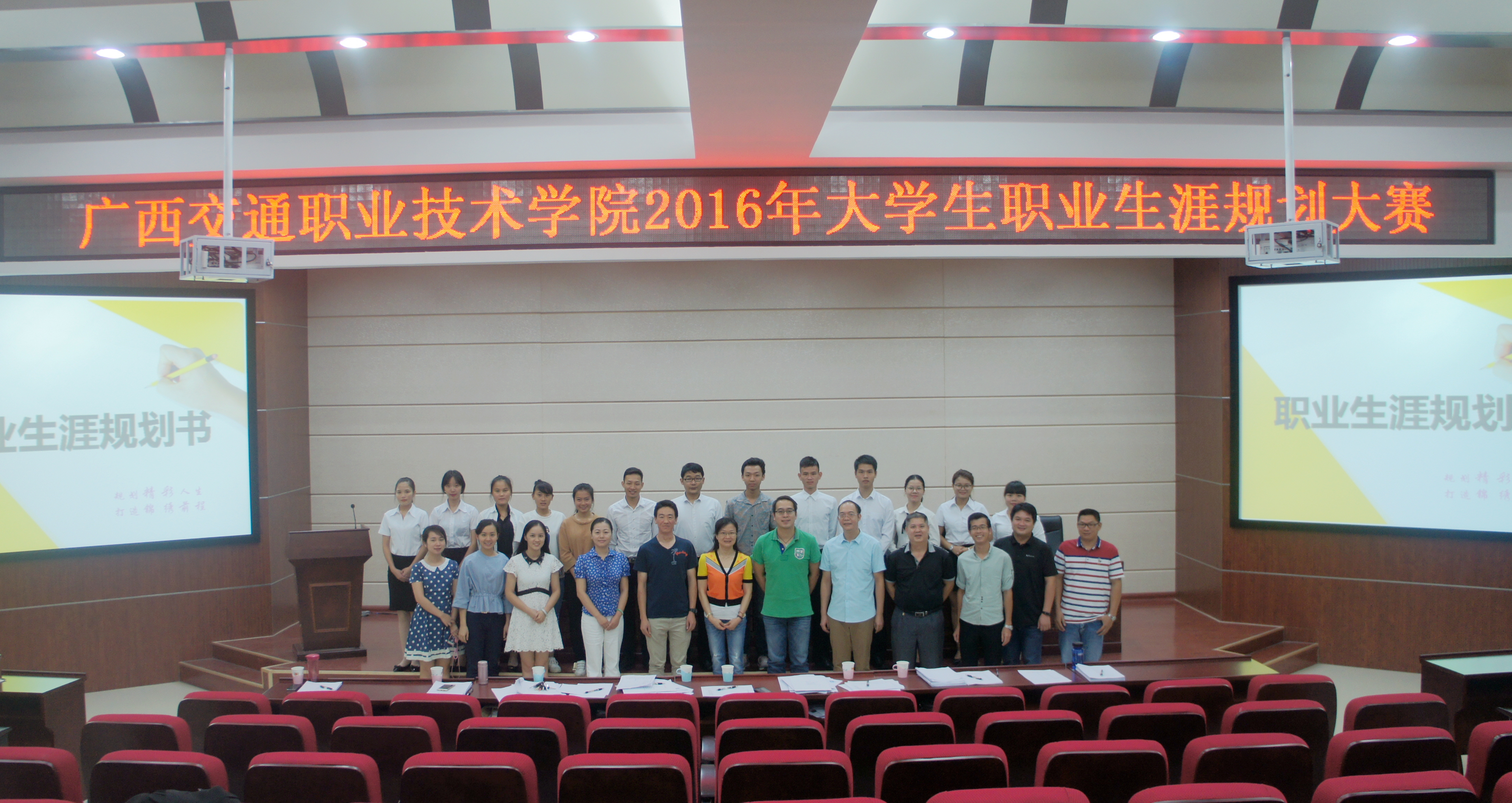 (招生就业处 黄健/讯)近日,由自治区教育厅主办的“到校外"杯广西区 2016年大学生职业生涯规划大赛学院选拔赛在四塘校区教学楼C1多功能报告厅成功举办。担任本次大赛评委的是招生就业处及各系相关就业指导老师。
