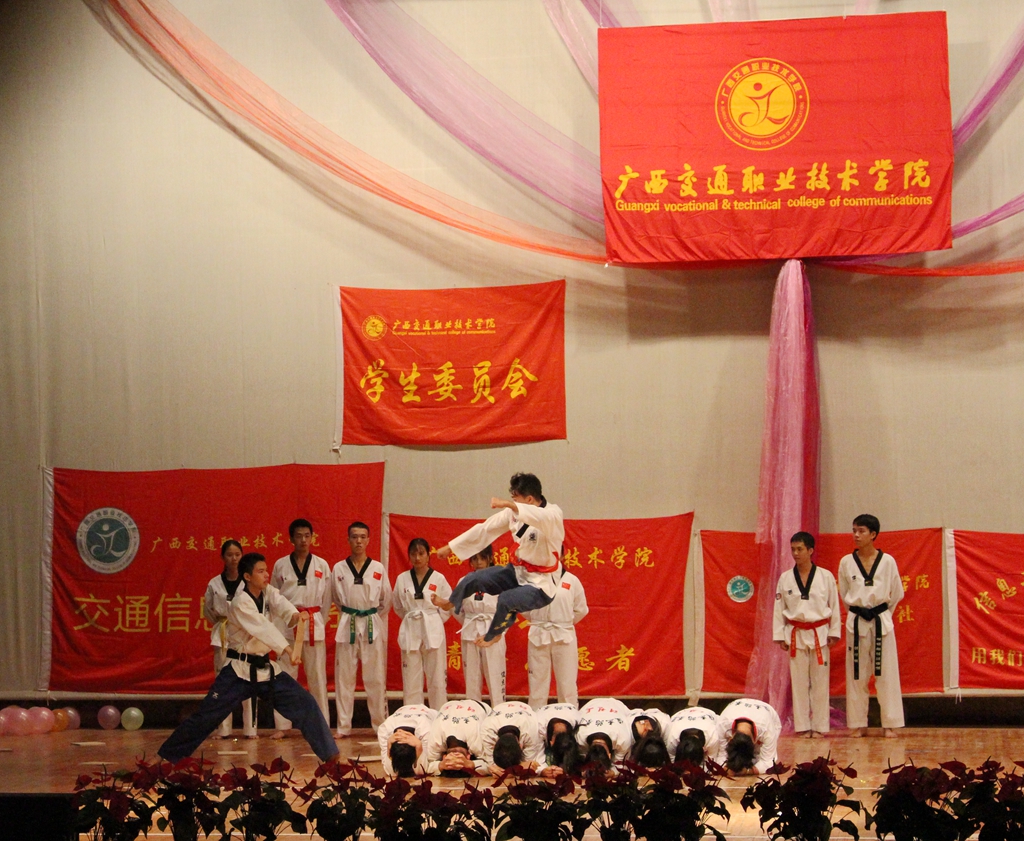 在随后的表演环节中,青年志愿者协会表演的《感恩的心》,用特殊的语言表达对社会聋哑人的关爱,将爱心化作无声的手势,现场洋溢着温馨的氛围;广播站同学的诗朗诵《我的祖国》献礼国庆,深情地传达出对祖国强大的无比自豪,慷慨激昂的朗诵赢得台下的欢呼与喝彩;院学生会杨关叠同学的《钢琴联奏》将本次晚会推向了高潮;啦啦操协会的《we are young》,让观众们看得是激情澎湃;最后,晚会在跆拳道协会表演的《跆拳有道》中落下了帷幕。