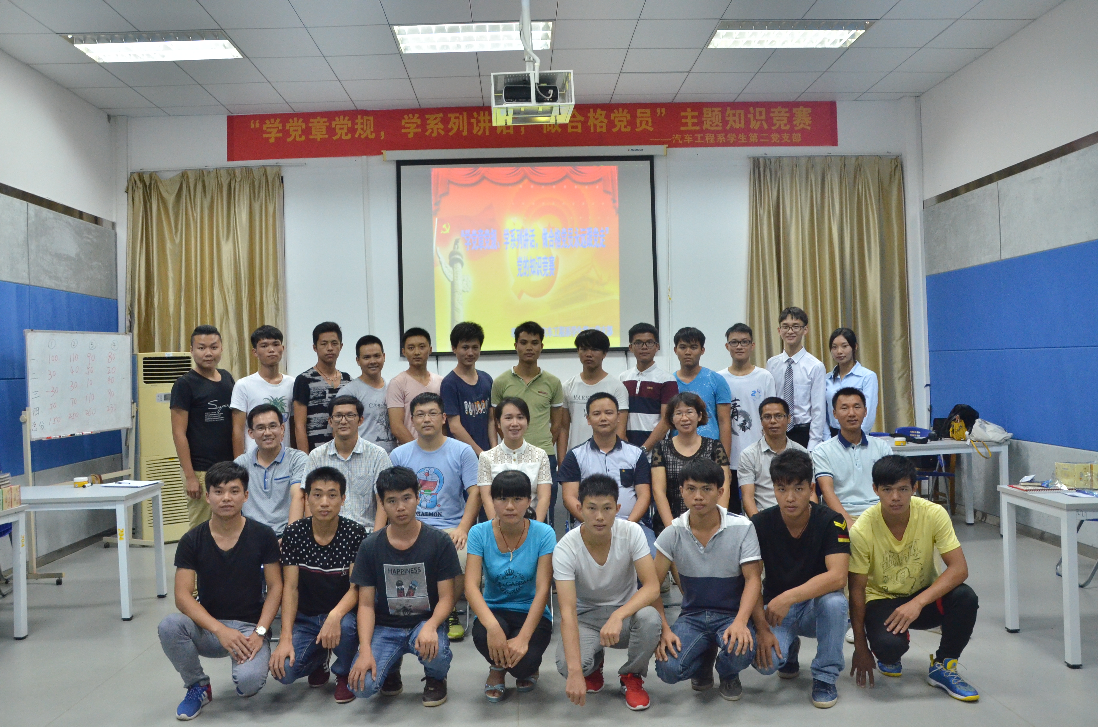 (汽车工程系 讯 吴丹,覃晓涓/文 梁志宇/图)9月18日,学院汽车工程系学生第二党支部开展“两学一做”主题知识竞赛,支部教师党员、系2015级部分入党积极分子参加了比赛,系党总支书记、统战委员到场观赛和指导。