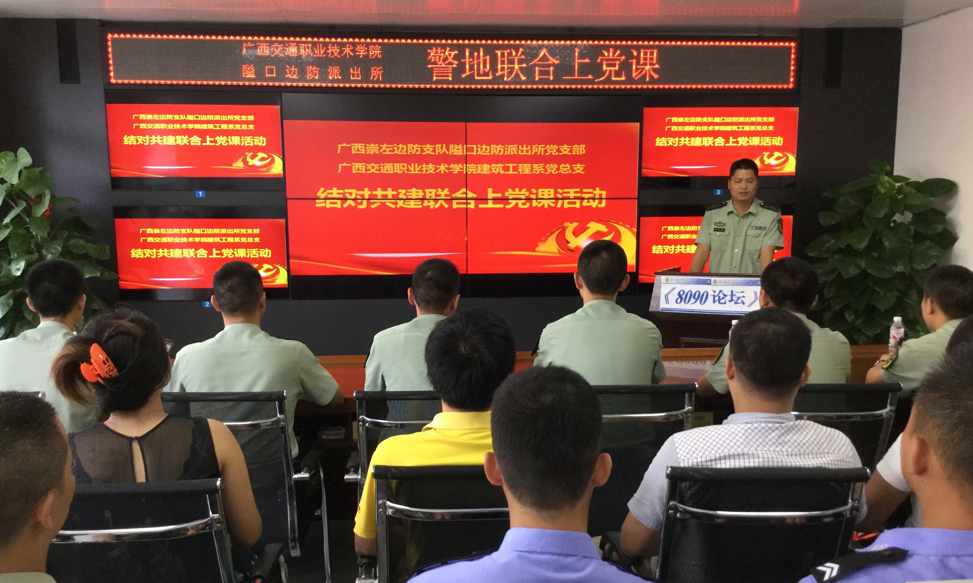 活动中,派出所指导员杜万鞭同志介绍了隘口边防派出所的基本情况,并为教师党员讲解边防官兵在边境值勤、维护边境秩序、保护边疆人民生命财产的安全、处理边境涉外事务、做好群众工作和民兵工作、搞好军民联防等工作实例;建筑工程系党总支书记邱文成从“两学一做”的背景、党章、党规的解读与如何做一名合格党员等内容,结合当前社会实际和自身感受,旁征博引、深入浅出地对现场党员进行了教育和引导。此次活动受到派出所官兵与党员教师的普遍好评,也让党员官兵和教师接受了教育,进一步了解一线边防官兵的使命与职责,进一步增强爱党爱国情怀。