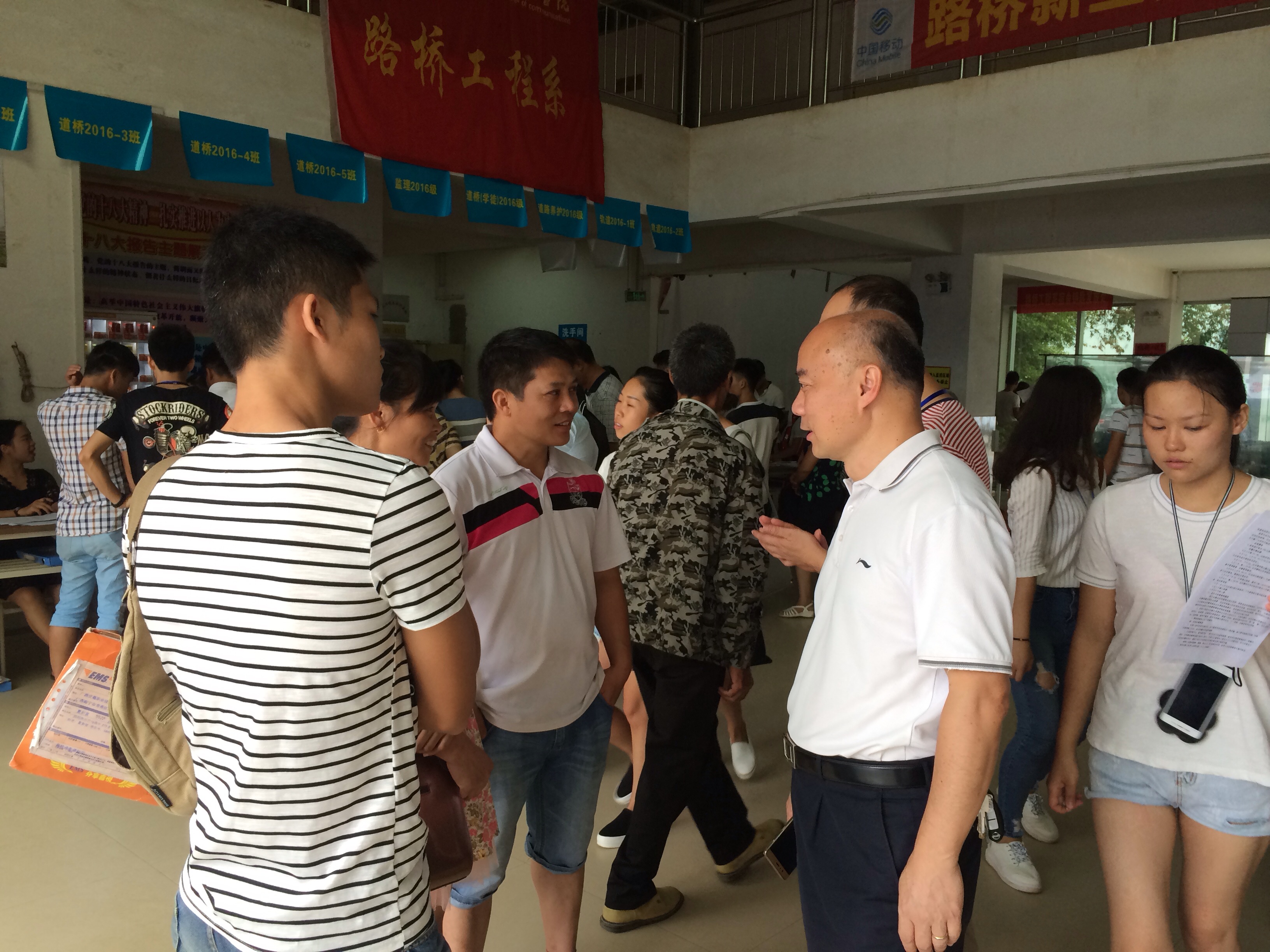 2016级新生报到当天,学院领导和相关部门负责人一大早就来到迎新工作现场,深入到接待新生一线工作岗位了解情况,对学院各部门、各单位迎新接待服务工作进行检查指导,随时关注各系新生报到率、“绿色通道”、缴费等情况,并同在场学生及家长进行了交流,勉励新同学自强不息,积极进取,奋发有为。领导现场办公,帮助解决实际困难,充分体现了学院对新生的热切关怀。
