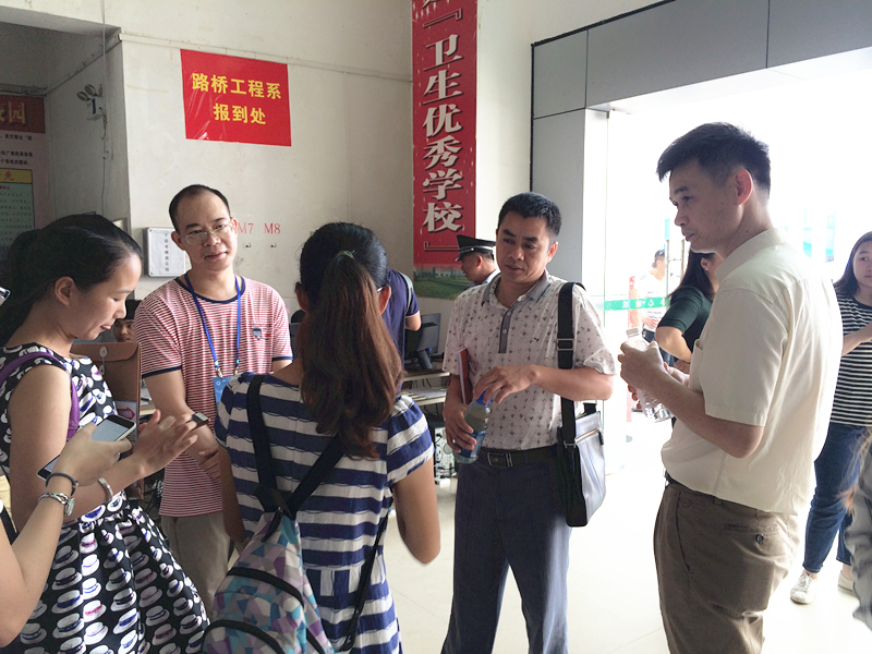与此同时,学院分别在南宁火车站、南宁火车东站、琅东汽车站、江南汽车站、金桥汽车站、西乡塘客运站、安吉客运站等南宁市内各大站点设置新生接待点,安排老师和学生志愿者接待新生及家长。在接待现场设立了行李存放处、新生咨询处,安排学生志愿者全程协助,加以引导。在各系接待点安排了系部咨询处,以教学经验丰富的专业教师、辅导员为主要力量队伍,为新生及家长提供专业咨询。学院提供的优良环境和温馨服务得到了广大新生及家长的一致好评。
