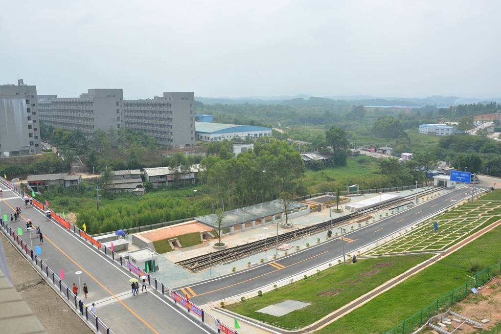 (党委工作部 路桥工程系 讯)近日,学院四塘校区道路桥梁工程技术专业教学工场顺利通过验收,标志着该教学工场主体建设正式完成。教学工场占地面积约1.35万平方米,修建有桩基检测区、路基压实度检测区、隧道、轨道等13个内容的教学实体展示区,为培养道路桥梁工程专业技术专业人才提供丰富的教学平台。