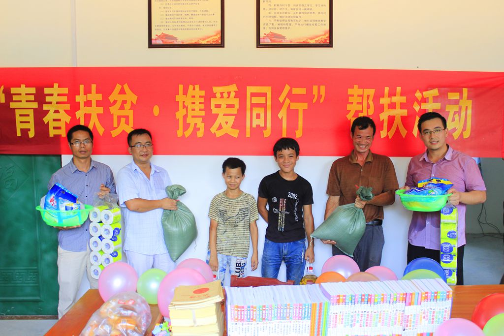 7月12日,我院汽车工程系在大同乡信河村村小学前举行“青春扶贫 携爱同行”帮扶基地揭牌仪式。汽车工程系以现有青年学生校园创业项目炫酷汽车美容店为依托,与信河村村委联合打造“青春扶贫”帮扶基地,建立长期帮扶机制,在创业收益中提取部分资金对村里的贫困儿童进行资助帮扶,提供学习和生活用具。揭牌仪式上,志愿者们将精心准备的油、米等生活必需品交给村里的两位孤儿。当日,志愿者们还与村里22名留守儿童开展互动关爱活动,并将精心准备的76册图书在村小学建立起图书角,陪孩子们看图书,做游戏。