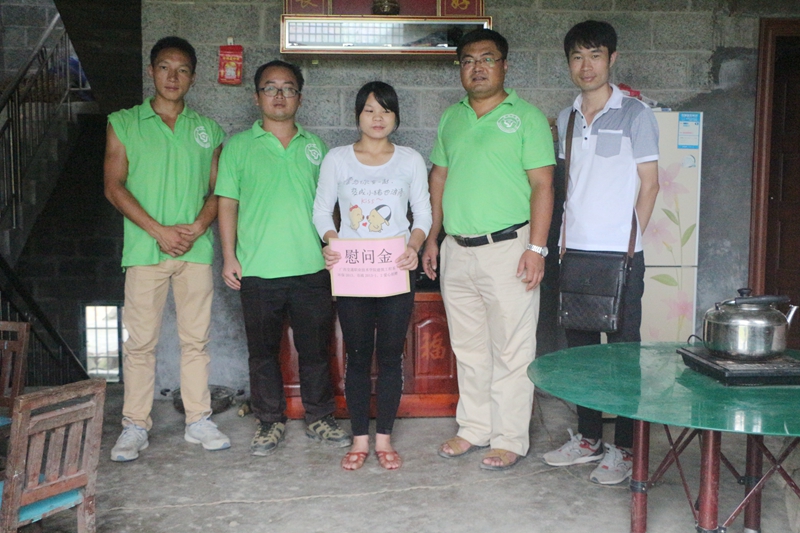 12日,为纪念“红军长征胜利80周年”,提升党员理想信念和宗旨观念,社会实践队师生负重“行军” 18.74公里,走访了丘懂、弄好、弄林、可雄、弄汝、南岭、更坡等11个屯,共耗时8小时。社会实践队在“行军”途中将慰问金、爱心文具、油、米、糖、面条等慰问物品依次送到蒙武胜、兰美新、兰海等24户贫困家庭,系党总支副书记邱文成亲切与村民拉家常,关心贫困家庭的实际困难。