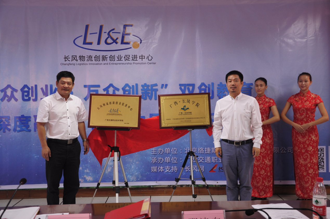 (管理工程系 讯 ) 7月3日,我院与北京络捷斯特科技发展有限公司(Logis)共同成立的广西长风物流学院&长风双创学院在园湖校区举行揭牌仪式,双方签订战略合作协议。学院党委书记温宗胤、副院长陈海峰等院系领导,Logis总经理邵清东、资源研发中心副总监张慧以及广西物流行指委、物流协会、物流企业、16所中高职、本科院校的领导专家参加了同时举办的“大众创业 万众创新”双创教育&校企深度融合、产教协同发展研讨会。