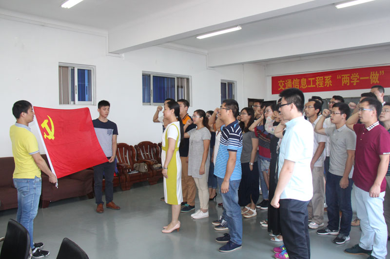 图3. 莫海燕副书记带领全系教师党员在党旗下重温入党誓词