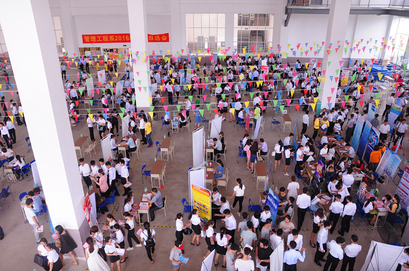 当天下午两点,双选会正式拉开帷幕。管理工程系2014级全体学生早早来到双选会现场。招聘企业求才若渴,有的企业早早来到招聘现场。招聘专业对口的企业广受青睐,不多时招聘桌前就排起长龙。通过现场随机采访,大多数同学表示,应聘专业对口的岗位自身比较有优势,并且在今后的工作中可以发挥自身的专业技能;也有的同学另辟蹊径,即使专业不对口,也想给自己全新的尝试,通过跨专业、跨行业来历练和突破自己。 本届双选会成功举办,得到了学院领导的大力支持和悉心指导。当天上午,学院陈海峰副院长来到现场,指导双选会场地的布置工作。双选会期间,学院程轮院长百忙之中抽出时间来到双选会现场调研并指导工作。程院长高度评价“本次双选会举办得好,组织工作很到位”,同时指导系部“要做好本次双选会的数据统计和分析,切实发挥好双选会对促进学生就业工作的作用”。