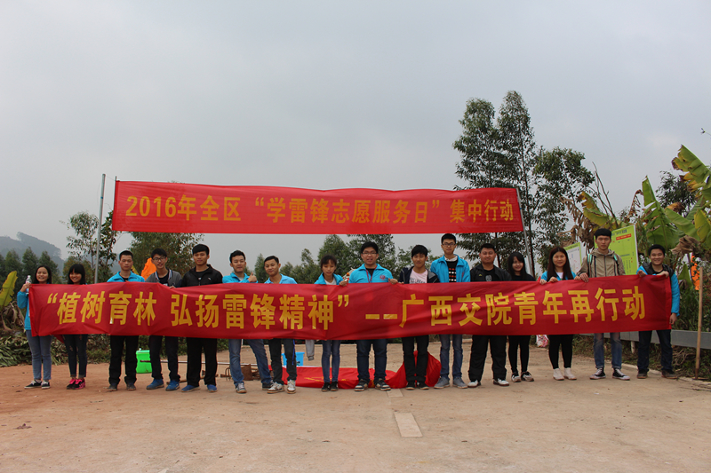 上午9点30分,我院青年志愿者们到达植树活动启动仪式现场,与来自全区各领域的学雷锋志愿者一起参加启动仪式。仪式上,党员志愿者,青年志愿者向全体志愿者发出倡议——弘扬雷锋精神,参与志愿服务,共建美丽广西。
