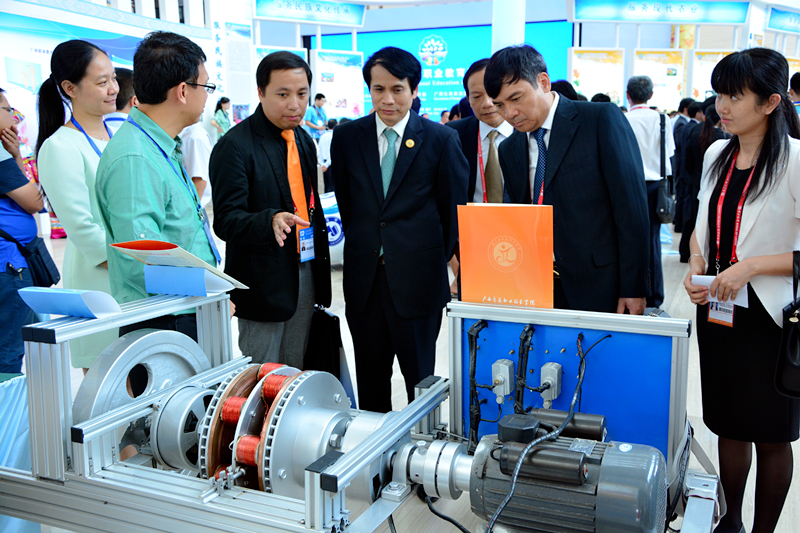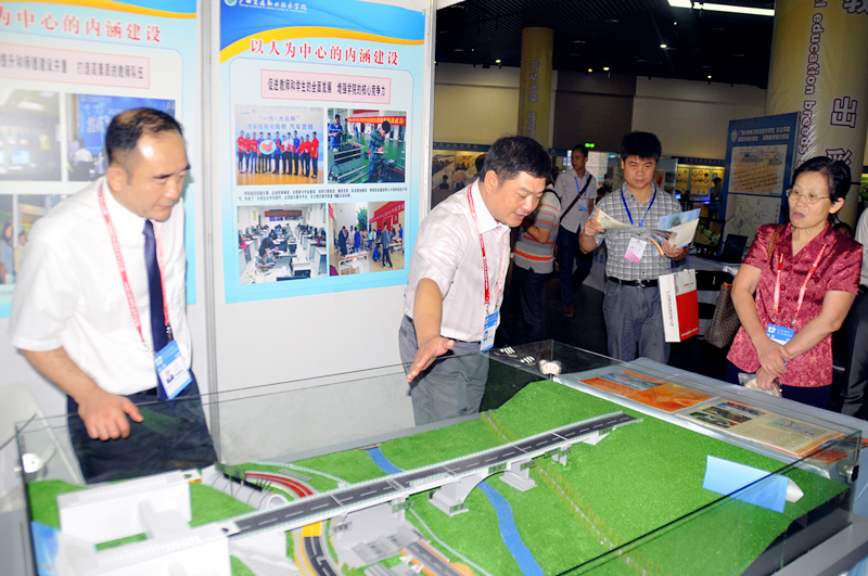 (党委工作部 讯)9月18-19日,2015中国—东盟职业教育展暨论坛在广西美术馆展出。全区本科高校、职业院校,国内8省市部分院校,港澳台部分学校,东盟国家部分院校及14家实训教学装备参展厂商参展。我院以节能型自励式缓速装置、道路桥梁工程技术专业校园教学工场模型等具有学院代表性的办学成果向现场领导、嘉宾及广大来宾展示了学院的办学特色与职业教育的发展成果,加强与东盟职业教育的交流与合作。
