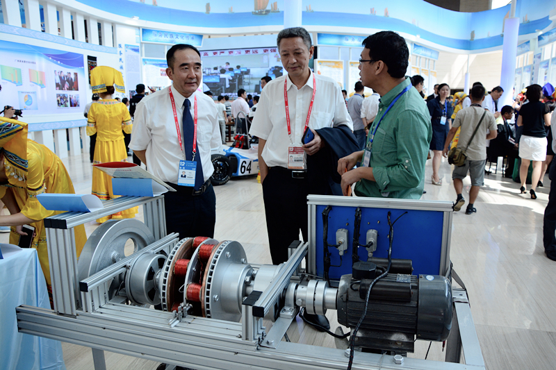 广西壮族自治区人民政府副主席李康(右二)、广西教育厅厅长秦斌(左二)参观我院节能型自励式缓速装置展品