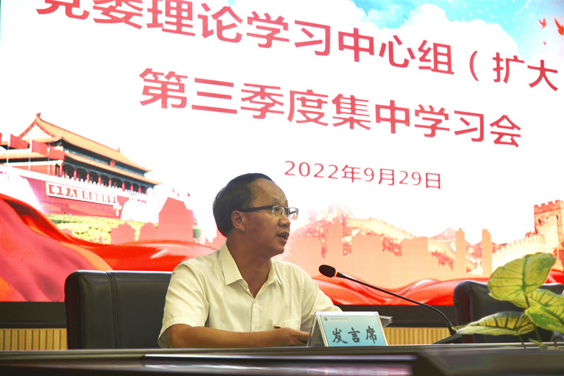 (党委宣传部 讯 )9月29日下午,学校在昆仑校区召开党委理论学习中心组(扩大)第三季度集中学习会,深入学习习近平总书记在省部级主要领导干部专题研讨班上的重要讲话精神,学习领会《习近平谈治国理政》第四卷,进一步提高认识、坚定信念,不断增强学习贯彻的自觉性和坚定性,为迎接党的二十大胜利召开筑牢思想基础。