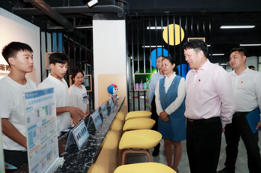 随后,林奇茂二级巡视员,厅直属机关党委副书记、纪委书记李勇斌,厅团委书记李世锋等与会领导、嘉宾在学校党委副书记莫海燕的陪同下参观指导学校“一站式”学生社区、交院青年活动中心建设,现场参观了解学校昆仑校区教学环境、软硬件设施建设、师资力量配备、教学课程开设等情况,并与学生亲切交谈,详细了解各类综合实践活动开展情况。