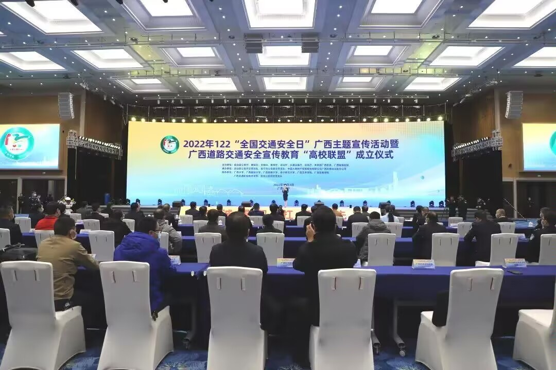 2022年全国法制宣传日前夕前夕,122“全国交通安全日”广西主题宣传活动暨广西道路交通安全宣传教育“高校联盟”成立仪式在南宁举行。PP电子作为第一批7个联盟成员单位之一(广西高职院校唯一)现场参加了仪式。