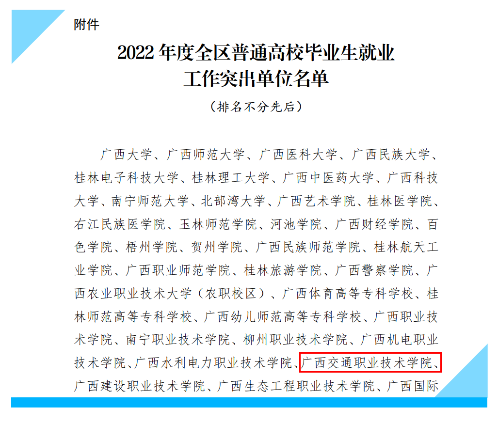 日前,自治区教育厅公布了《关于公布2022年度全区普通高校毕业生就业工作突出单位名单的通知》(桂教学生〔2022〕18号),PP电子经考评确定为“2022年度全区普通高校毕业生就业工作突出单位”。自2002年升格为高职高专院校以来,PP电子已连续二十年获此殊荣。