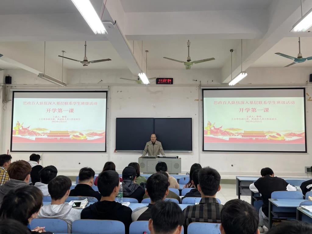 学校将“开学第一课”作为大学生思想政治教育的重要举措,注重顶层设计,精心谋划组织,开展了主题教育系列活动。在校领导示范带动下,全校中层干部和思政专职教师等“思政百人队伍”联动配合,深入所联系班级,通过召开主题班会、走访宿舍、参与社团活动等多种方式,广泛开展思想政治教育、安全法纪教育、心理健康教育、学业指导和生活帮扶等,着重解决思想动态、学业情况、心理健康、生活状况、未来发展等关于学生最直接、最现实的问题,促进学生思想政治教育与管理服务工作更具亲和力与实效性,更好地引领青年学生健康成长成才。