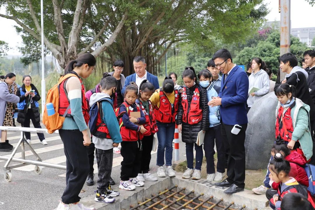 在路桥实训工场,孩子们在这里看到了路桥工程建设中常见的涵洞、路基、路面、护坡、桥梁等。为孩子们介绍轨道种类、隧道修建的复杂工程、修路时路面及路基材料的区别……介绍起专业内容,学校教师科普使者黄贤智老师如数家珍。