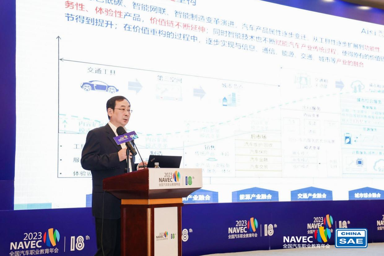 中国汽车工程学会常务副理事长兼秘书长、全国汽车职业教育教学指导委员会主任委员张进华作主旨报告