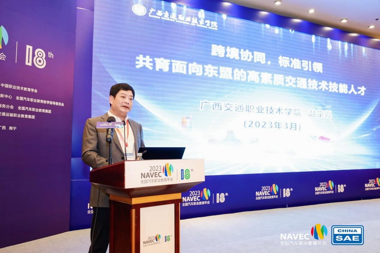 学校党委书记温宗胤在主旨报告《跨境协同,标准推广 共育面向东盟交通建设的技术技能人才》中介绍了学校面向东盟开展国际教育合作,培养中国-东盟交通技术技能人才的经验做法。他表示,学校立足地方区域优势、主动服务国家发展战略,通过探索构建“西鉴-中融-东输”新理念,组建东盟合作的教育教学基地,构建面向东盟的国家交通人才国际合作的教育教学标准。通过创建标准引领、平台支撑、训育并举、机制保障的新模式,不断加强东盟国家交通建设本土化人才的培养,提升东盟国家的学生职业技能,不断提升国内学生服务东盟交通建设综合能力。他指出,未来学校将不断深化东盟职教国际合作,发挥交通运输与职业教育的双重特色,共同培养面向东盟的高素质交通技术技能人才,助力构建更紧密的中国东盟命运共同体。