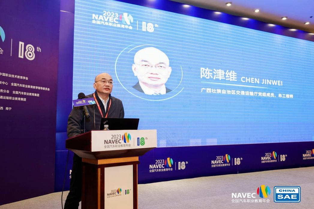 广西壮族自治区交通运输厅党组成员、总工程师陈津维表示,广西始终牢记习近平总书记在视察广西时赋予广西“三大定位”的新使命,将立足区域优势,主动对接“一带一路”、长江经济带以及粤港澳大湾区、西部陆海新通道等国家重要战略,一如既往地支持和指导交通职业教育的发展以及交通技术技能人才的培养,助力交通运输事业实现高质量发展。他指出,此次全国汽车职业教育年会的召开既是对广西汽车职业教育的认可,也是对广西交通职业教育,特别是汽车职业教育办学成果的充分肯定,将为广西汽车产业和汽车教育高质量融合发展提供良好契机和强大助力。