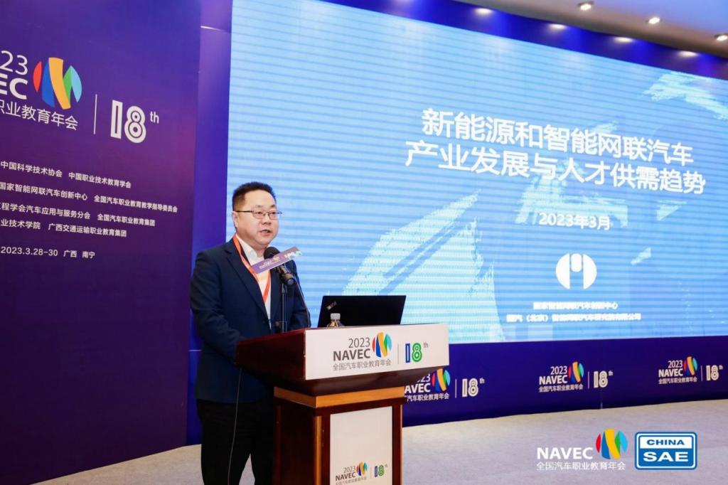 国家智能网联汽车创新中心常务副主任、全国汽车职业教育教学指导委员会副主任委员严刚作主旨报告