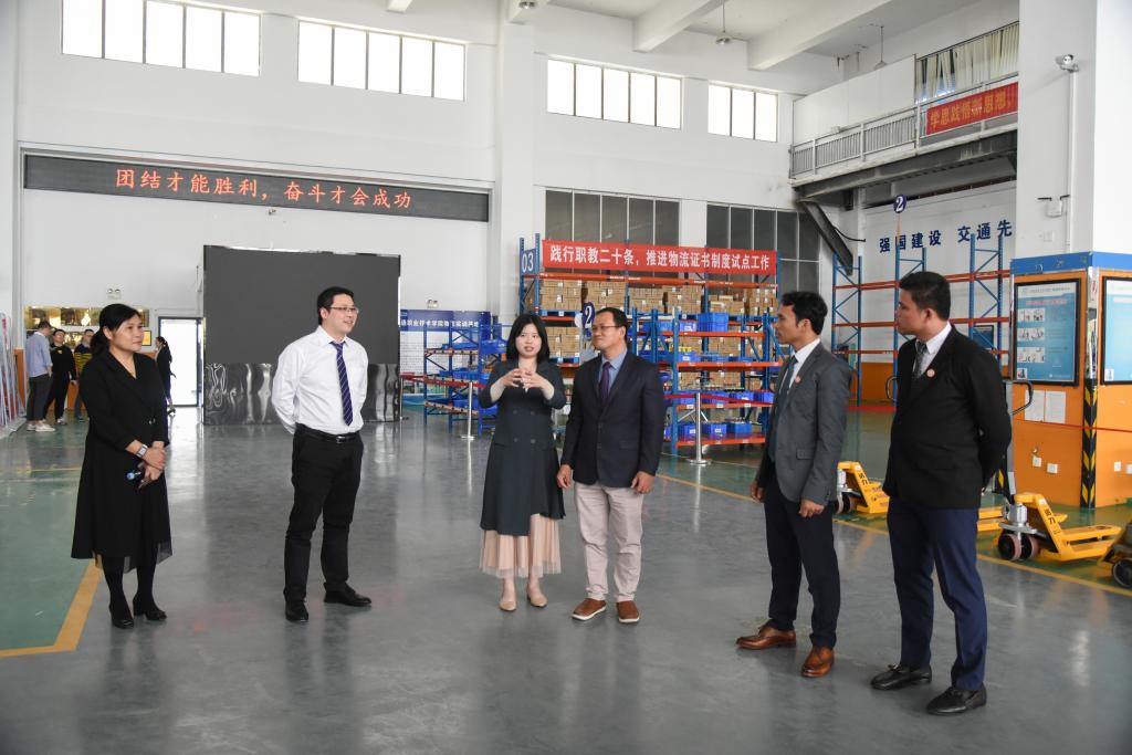 座谈会后,SEAMEO TED代表团参观了学校汽车虚拟仿真实训基地、汽车整修实训基地、智慧物流实训基地、城市轨道交通实训基地及路桥教学工场。