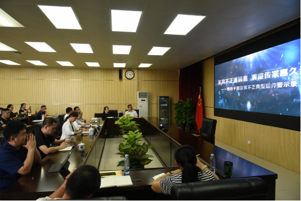 会上,参会人员观看了《家风不正遗祸患 清廉传家惠久远——领导干部家风不正典型案件警示录》。警示录深刻揭露了腐败分子惯用伎俩及腐化堕落的思想根源,阐述了家风败坏往往是诱发领导干部走向严重违法犯罪的重要原因,以及腐败案件引发的严重后果和深远影响。通过集中观看部分领导干部严重违纪违法案例,警示各级党员领导干部要以案为鉴,带头遵守党纪国法,从政治高度重视家庭、家教、家风建设,廉洁修身、廉洁齐家。