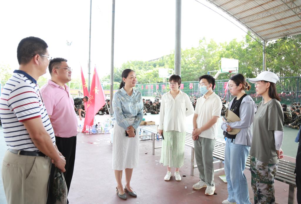 学校党委副书记莫海燕深入“练兵场”,先后到三个校区看望慰问参训学生,仔细了解和询问军训期间的组织纪律、爱国主义教育活动开展、后勤服务保障、学生身体健康状况等情况并勉励同学们珍惜军训的机会,振奋精神认真参训、听从指挥严守纪律、磨炼坚强意志品质,在国防教育中根植崇军爱国的情怀,争做有理想、敢担当、能吃苦、肯奋斗的新时代能工巧匠、大国工匠,让青春在火热实践中绽放绚丽之花。