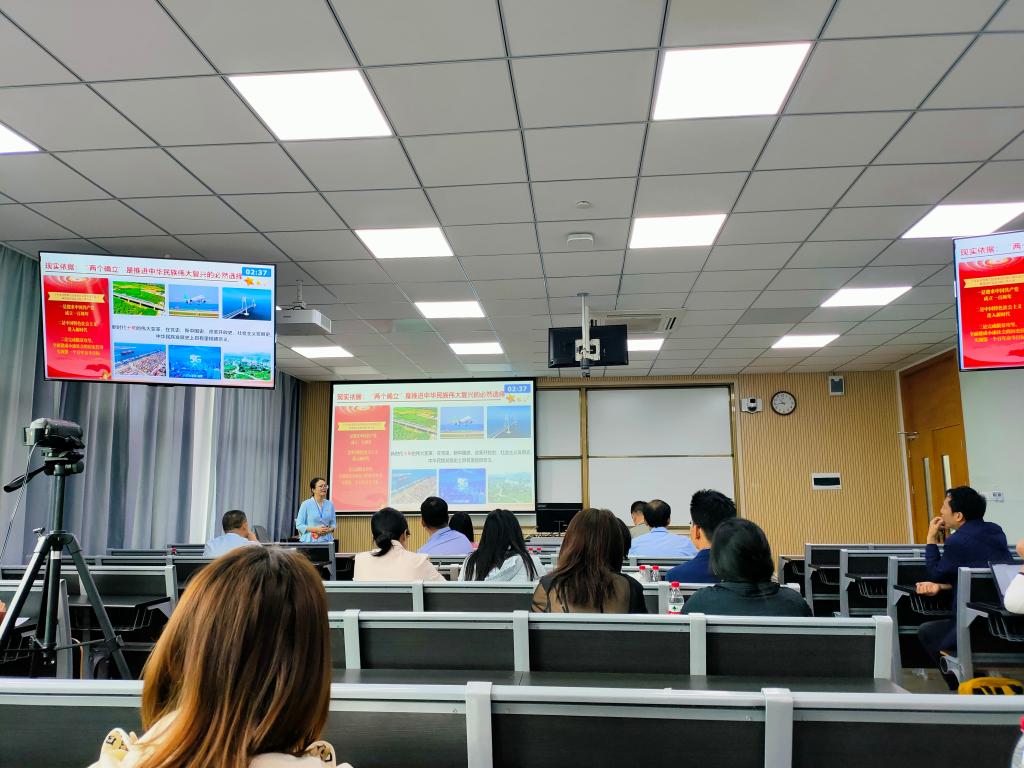马克思主义学院院长周黎华表示,正值学校深入开展学习贯彻习近平新时代中国特色社会主义思想主题教育,作为思政课教师,应充分发挥思想政治理论课主渠道作用,将党的二十大精神充分融入课堂、融入学生头脑,充分挖掘资源,切实增强课程吸引力和感染力,帮助学生通过学习党的二十大精神,有效提升政治认同、思想认同和情感认同,确保党的二十大精神落到实处、取得实效。