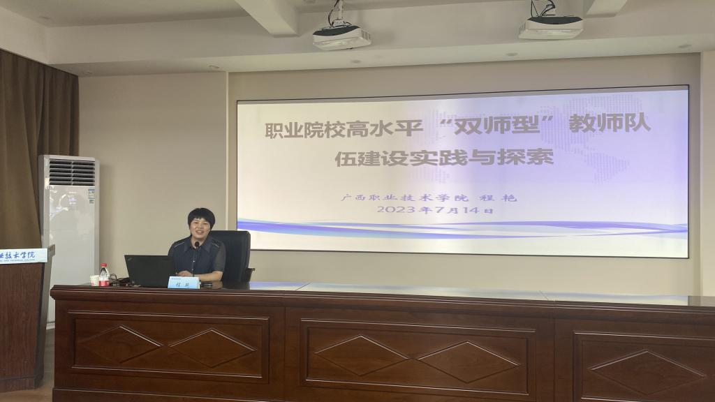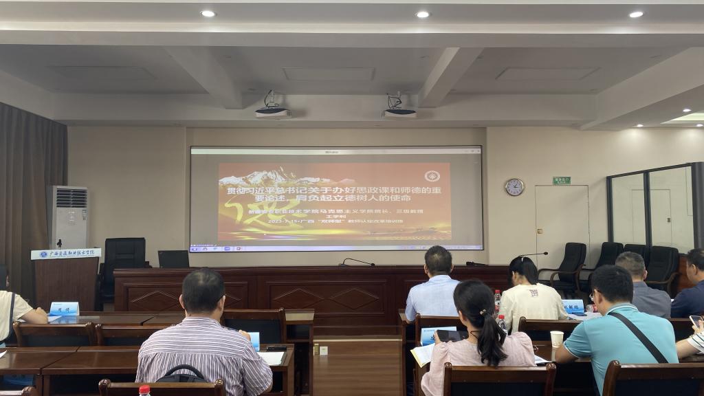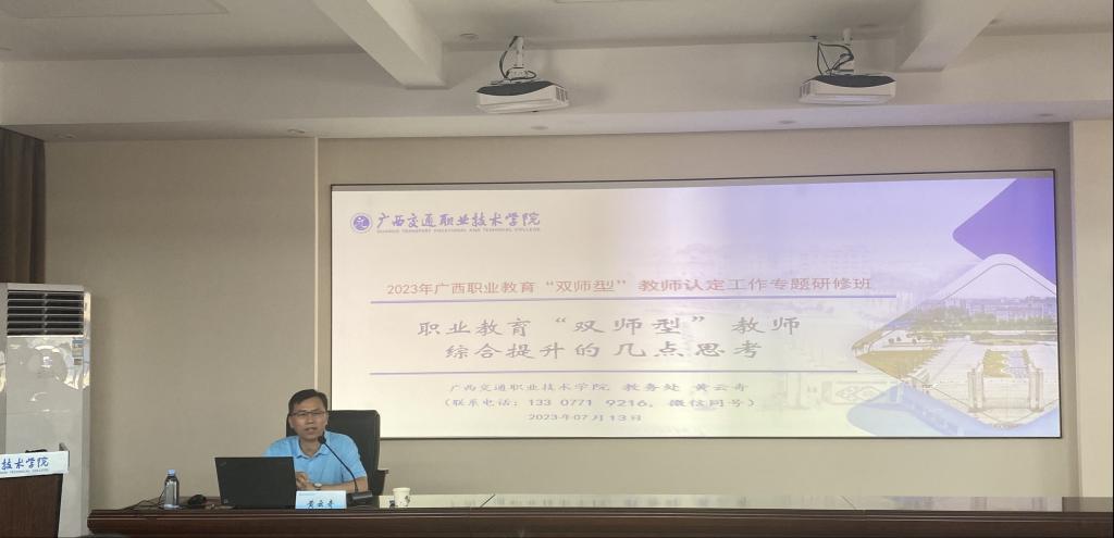 此次培训班为期五天,以主会场主讲+分会场视频形式开展。培训班精心组织,围绕职业院校“双师型”认定工作改革,既安排了国家关于职业教育发展改革的系列文件、广西职业教育“双师型”教师认定基本标准(试行)的政策学习,也安排了教师师德师风、职业教育‘双师型’教师综合能力、“双师型”教师队伍培养与建设等专题辅导,还安排了“双师认定工作实务”等实操讲解。