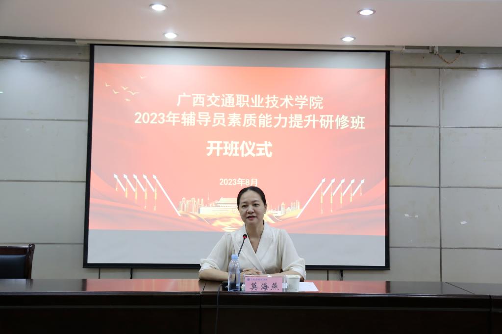 研修班开班仪式上,学校党委副书记莫海燕作培训动员。她指出,举办本次研修班是学校提升辅导员素质能力形式上的必然之需,是辅导员队伍实现互学互助路径上的必然之需,是帮助新入职辅导员老师步入新岗位、适应新角色的必然之需,也是培养一支与学校高质量发展背景相适应的有情怀、有担当、有作为的辅导员队伍形势的必然之需。她充分肯定了辅导员在大学生思想政治教育和学校建设发展中的贡献和作用,结合三年来分管学生工作以来的思考和感悟,围绕“热爱”“责任”“创新”这三个关键词,为全体学工队伍上了一堂既生动又深刻的“开学第一课”,尤其对于新时代辅导员职业核心素养发展具有很强的现实指导意义。最后,莫海燕副书记提出,希望全体辅导员队伍能牢固树立“以生为本 引领为纲 服务为先 管理为辅 创品提优”工作理念,站在立德树人的高度实现学生工作的新突破,在今后的工作中不断出成果、创标杆、见成效,为学校早日实现“争国家双高 创职业本科”规划目标贡献智慧和力量。