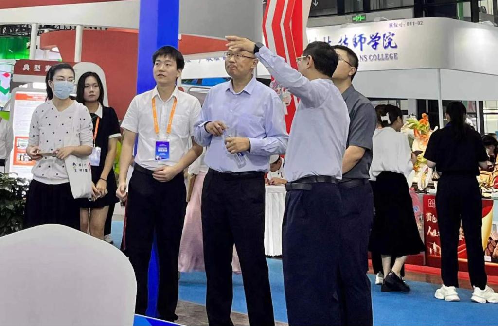 自治区人力资源和社会保障厅副厅长辛卫红(中间)参观学校展位