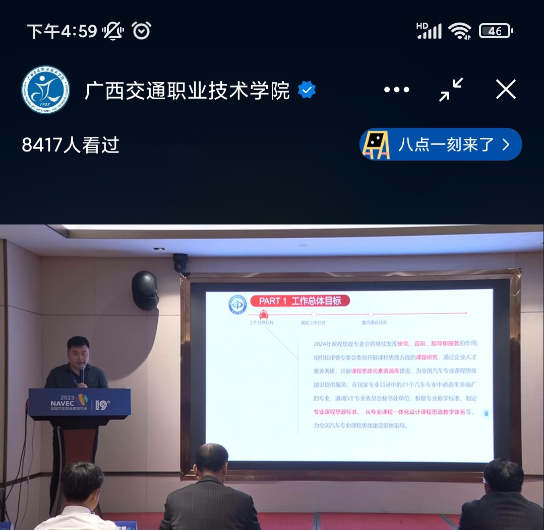 会议由汽车工程学院党总支书记、院长刘学军主持,邀请到了江西交通职业技术学院汽车工程学院院长官海兵、天津交通职业学院汽车工程学院党支部书记齐睿文、北京电子科技职业学院汽车工程学院汽车技术服务系主任刘敏杰、广西汽车集团有限公司郑志明、庞贝捷漆油贸易(上海)有限公司汽车修补漆培训及 MVP总监张小鹏分享课程思政建设经验、典型案例以及企业需要的高素质人才。
