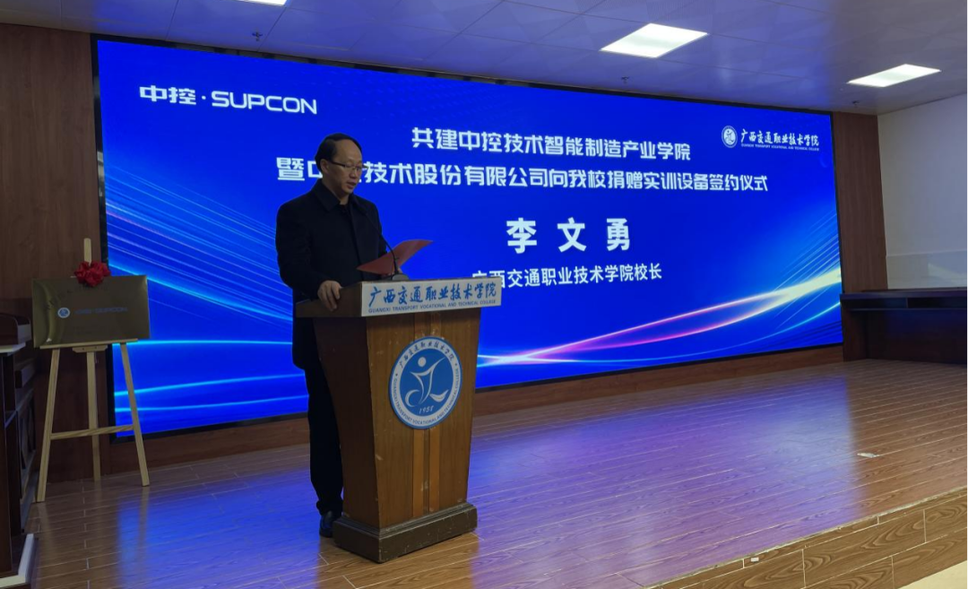 会议首先由李文勇校长主旨发言。李校长对中控技术专家领导的到来表示热烈的欢迎,并感谢中控技术向PP电子捐赠实训设备。本次校企共建,标志着PP电子在学科建设、科研创新、社会服务等方面获得社会的积极认可。李校长表示,欢迎更多行业龙头企业积极参与PP电子校企融合共同体建设,构建新型产教融合、科教融汇、积极打造校企命运共同体,共同培养高技能应用型人才。
