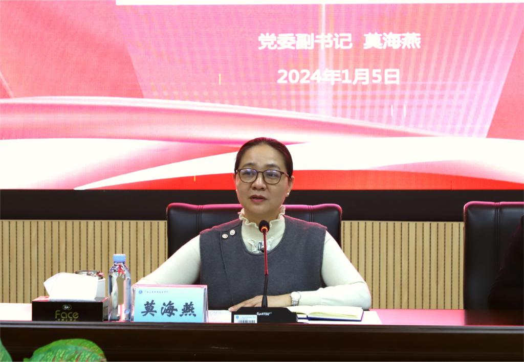 (党委学生工作部 讯 牛钦文 文/) 为巩固深化学习贯彻习近平新时代中国特色社会主义思想主题教育成果,进一步加强党的纪律建设,认真落实学校党风廉政建设工作要求,深入推进“清廉交院”建设,1月5日上午,学校党委莫海燕副书记在管理楼五楼会议室,为党委学生工作部、校团委全体人员和各二级学院党总支副书记、学工办主任(团委书记)、团委副书记上了一堂深刻的纪律教育专题党课。